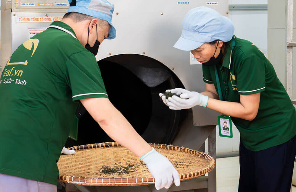 Xưởng tuân thủ tiêu chuẩn ISO 22000 : 2018, nhân viên sử dụng bảo hộ đầy đủ, quy trình được giám sát chặt chẽ. Sản phẩm trà xanh Thái Nguyên thuần khiết, chất lượng cao, mang đến trải nghiệm thưởng trà tuyệt vời cho khách hàng trong và ngoài nước