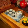 Khay đựng: Bộ ấm chén được đặt trên một khay sứ hình chữ nhật, cũng được trang trí họa tiết hoa cúc, giúp giữ vệ sinh và tăng tính thẩm mỹ khi sử dụng. Khay có viền vàng nâu, tạo sự đồng bộ với ấm và chén. - Ứng dụng và ý nghĩa: Bộ ấm chén Cúc Cổ Trường Thọ không chỉ là dụng cụ để pha và thưởng trà mà còn mang ý nghĩa phong thủy sâu sắc. Hoa cúc tượng trưng cho sự trường thọ, sức khỏe và may mắn, thường được dùng để cầu chúc cho gia đình hạnh phúc, an khang. Bộ sản phẩm rất phù hợp để sử dụng trong các buổi trà đạo, tiếp khách quý, hoặc làm quà tặng cao cấp, đặc biệt trong các dịp lễ Tết, mừng thọ, thể hiện sự trân trọng và lời chúc tốt đẹp.
