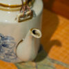- Thiết kế và họa tiết: Bộ ấm chén được trang trí bằng họa tiết hoa cúc cổ, vẽ tay tỉ mỉ bằng màu xanh lam trên nền sứ trắng ngà tinh khôi. Hoa cúc được vẽ với những cánh hoa mềm mại, xen kẽ lá xanh, tạo nên một tổng thể hài hòa, thanh thoát. Họa tiết này mang phong cách cổ điển, gợi nhớ đến những bộ sưu tập gốm sứ thời xưa, vừa mộc mạc vừa sang trọng. Ngoài hoa cúc, các đường nét uốn lượn nhẹ nhàng của lá và cành càng làm nổi bật ý nghĩa trường thọ, bền vững.