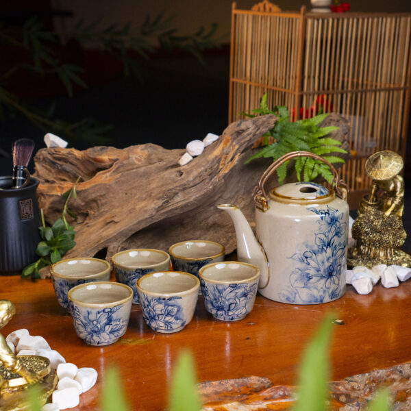 Bộ ấm chén Cúc Cổ Trường Thọ là một tác phẩm gốm sứ tinh xảo, được chế tác thủ công bởi các nghệ nhân lành nghề tại Bát Tràng, mang vẻ đẹp cổ điển và ý nghĩa sâu sắc. Tên gọi “Cúc Cổ Trường Thọ” gợi lên hình ảnh hoa cúc – biểu tượng của sự trường thọ, bền vững và may mắn trong văn hóa Á Đông. Bộ sản phẩm không chỉ là dụng cụ pha trà mà còn là một tác phẩm nghệ thuật, thể hiện sự kết hợp hài hòa giữa thiên nhiên và ý nghĩa phong thủy.