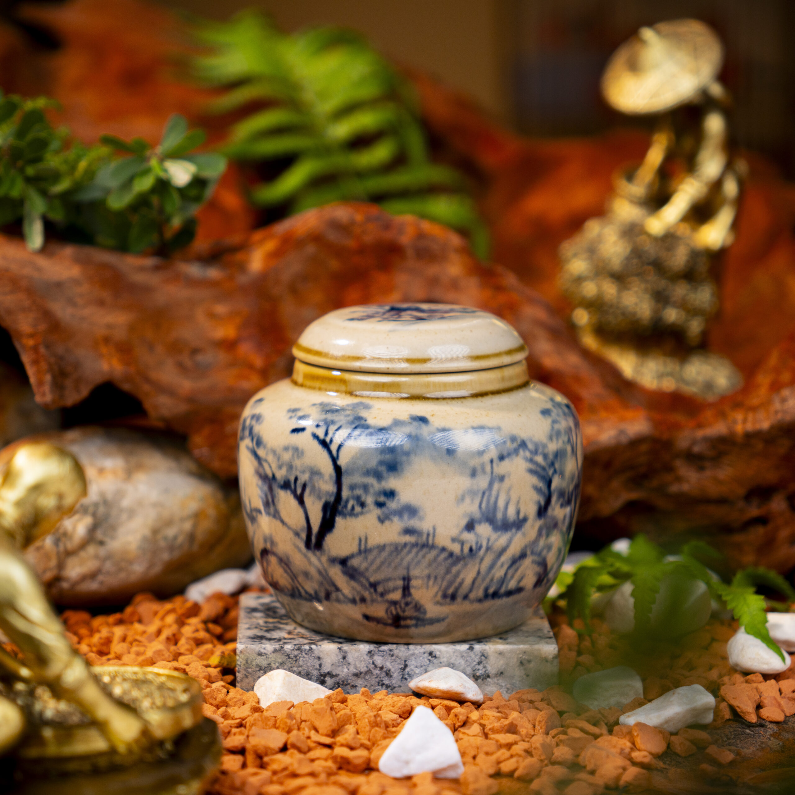 • Ứng dụng và ý nghĩa: Hũ đựng trà Sơn Thủy Hữu Tình không chỉ là vật dụng thực tế để bảo quản trà, giúp giữ hương vị và chất lượng trà lâu dài, mà còn mang ý nghĩa phong thủy sâu sắc. Họa tiết sơn thủy tượng trưng cho sự hài hòa giữa con người và thiên nhiên, mang lại may mắn, bình an và thịnh vượng cho gia chủ. Sản phẩm rất phù hợp để làm quà tặng cao cấp, đặc biệt trong các dịp lễ Tết, thể hiện sự trân trọng và tinh tế.