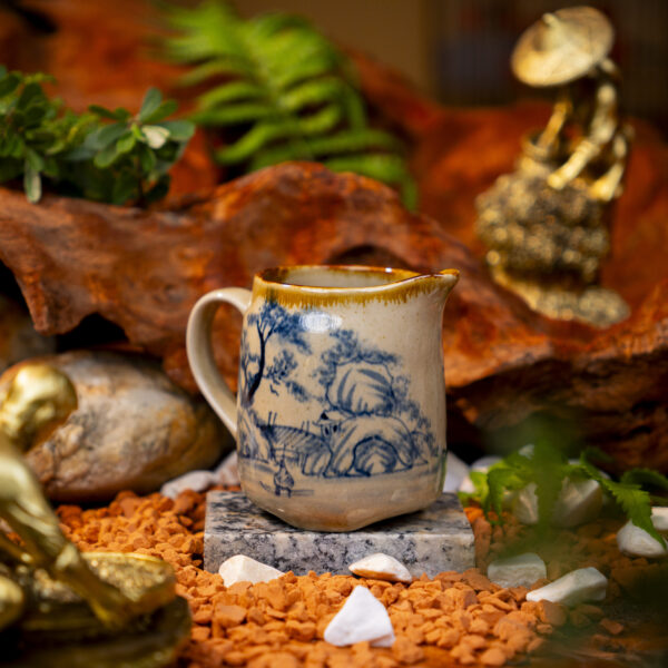 Tống trà Sơn Thủy Hữu Tình là một sản phẩm gốm sứ cao cấp, được chế tác thủ công bởi các nghệ nhân lành nghề của làng gốm Bát Tràng, mang đậm nét văn hóa truyền thống Việt Nam. Tống trà (chén tống) là dụng cụ không thể thiếu trong bộ trà cụ, dùng để trung chuyển trà từ ấm pha sang các chén nhỏ, giúp đảm bảo hương vị trà đồng đều và giữ nhiệt tốt hơn khi thưởng thức.