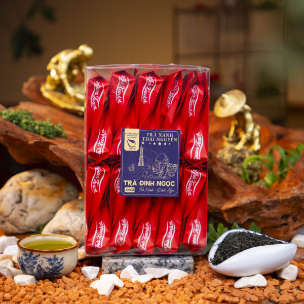 Trà Đinh Ngọc Thái Nguyên là một tuyệt phẩm thượng hạng đến từ vùng đất Tân Cương, Thái Nguyên – cái nôi của trà Việt danh tiếng. Được chế tác từ những búp trà non tinh túy nhất, hái bằng tay vào lúc sáng sớm khi sương còn đọng, Trà Đinh Ngọc mang trong mình hương vị thuần khiết và đẳng cấp. Từng cánh trà nhỏ li ti, xoăn chắc như đầu đinh, là kết tinh của đất trời và bàn tay khéo léo của các nghệ nhân sao trà hàng đầu. Với hương thơm cốm non dịu nhẹ, nước trà xanh trong ánh vàng, vị chát thanh tao hòa quyện hậu ngọt sâu lắng, Trà Đinh Ngọc Thái không chỉ là một thức uống mà còn là biểu tượng của sự tinh tế và sang trọng, xứng đáng là món quà quý giá dành cho những tâm hồn yêu trà.